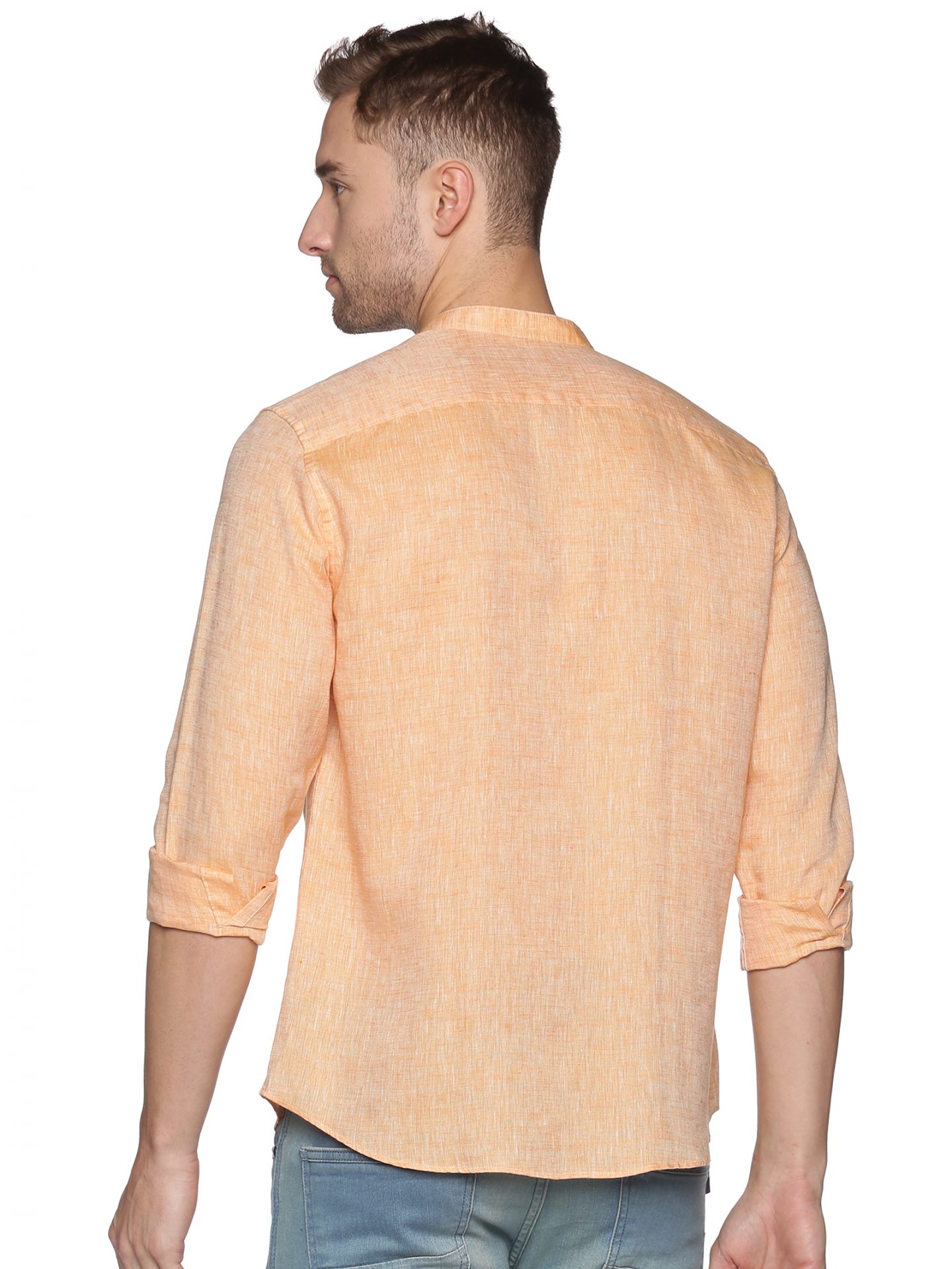 ALDENO Casual Pastel Orange Pure Linen Solid Shirt for Men