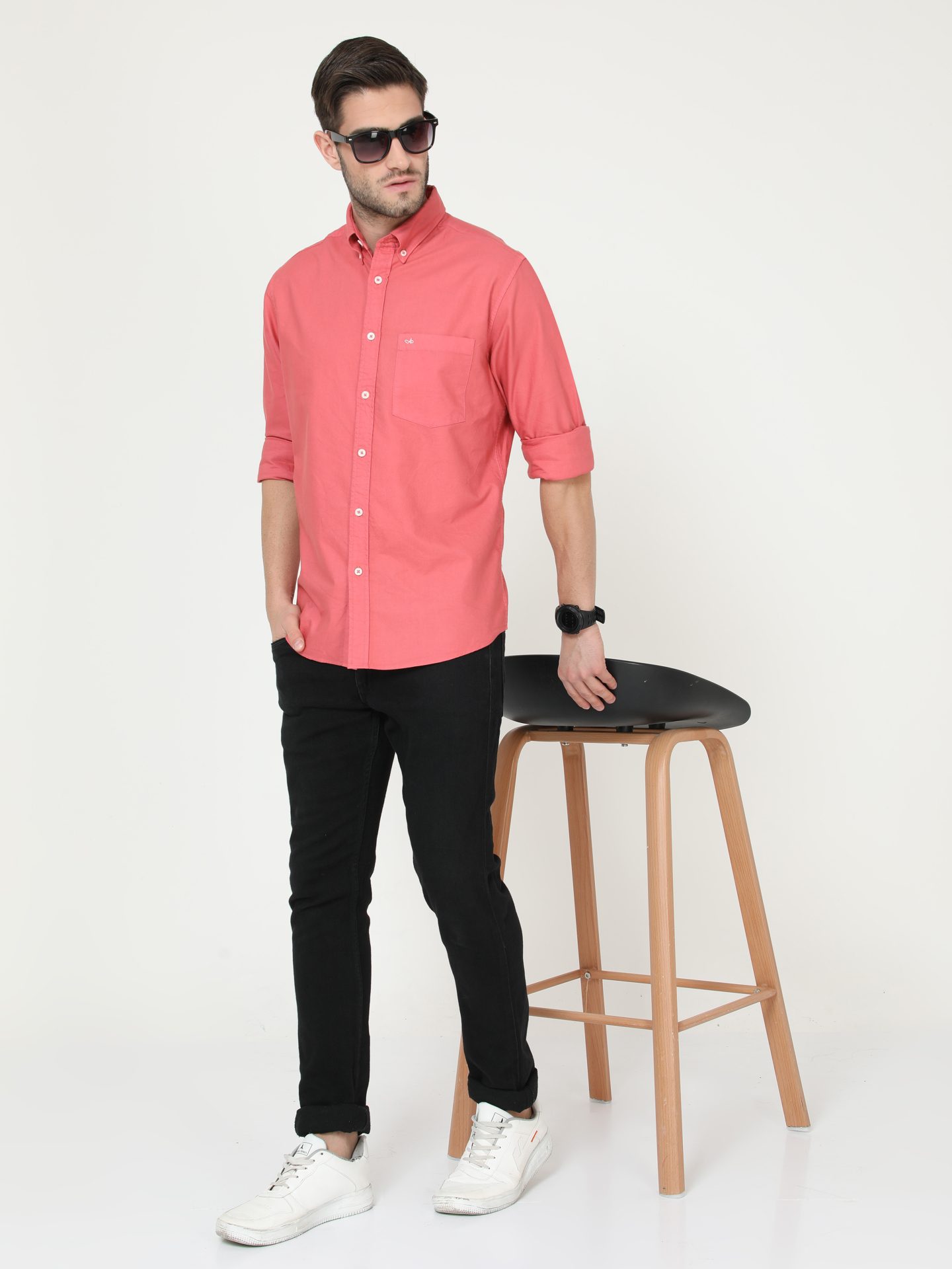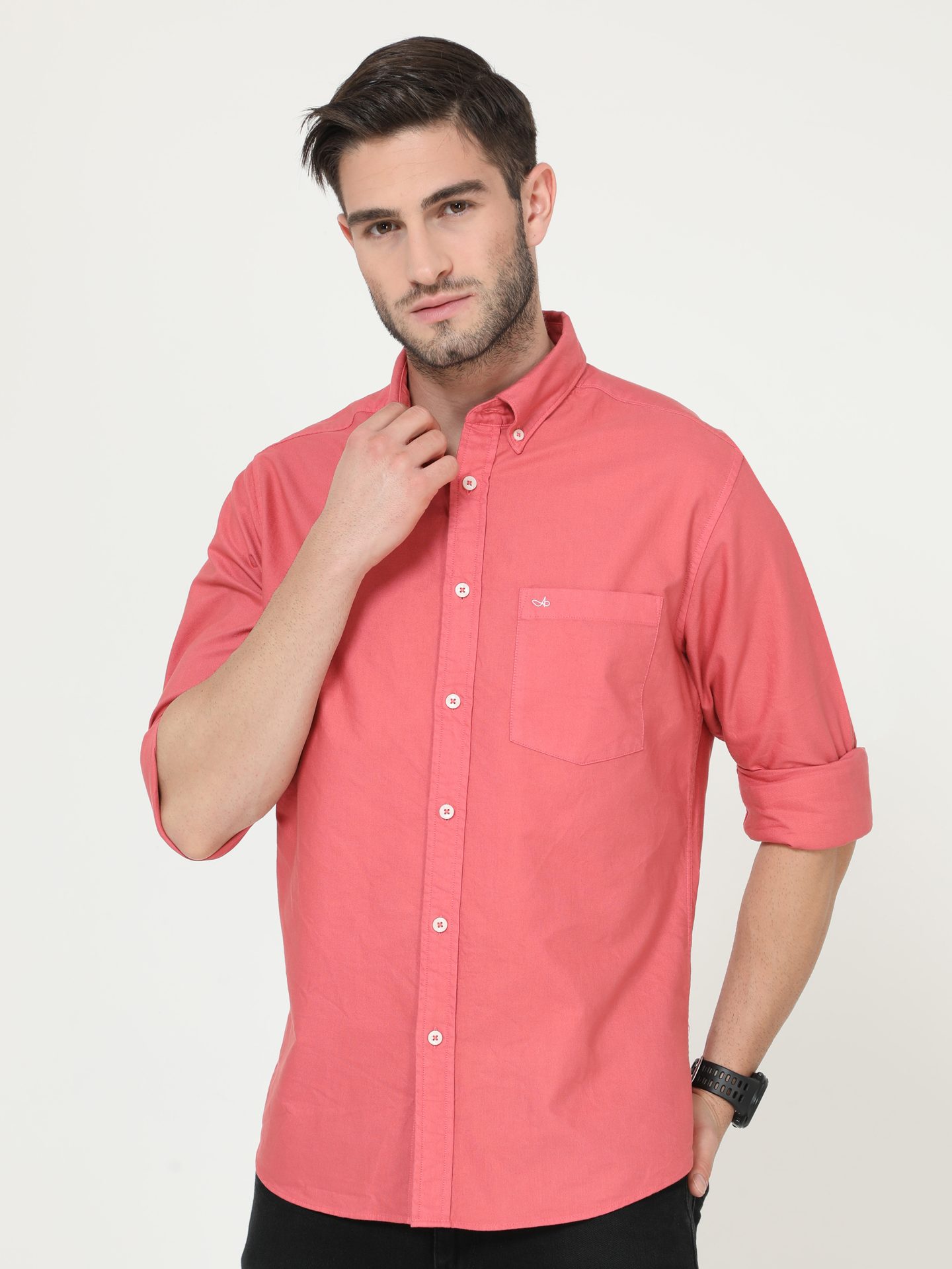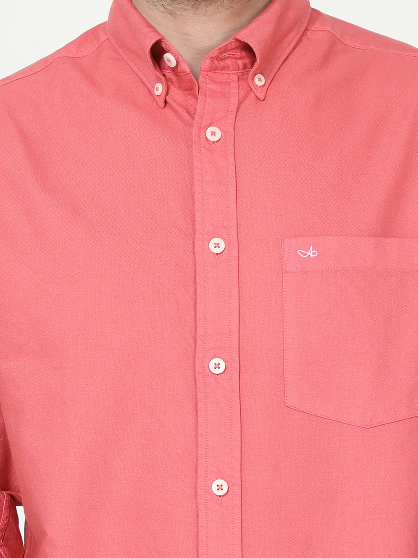 Aldeno Men’s Button Down Pink Full Sleeve Garment Dye Oxford Shirt