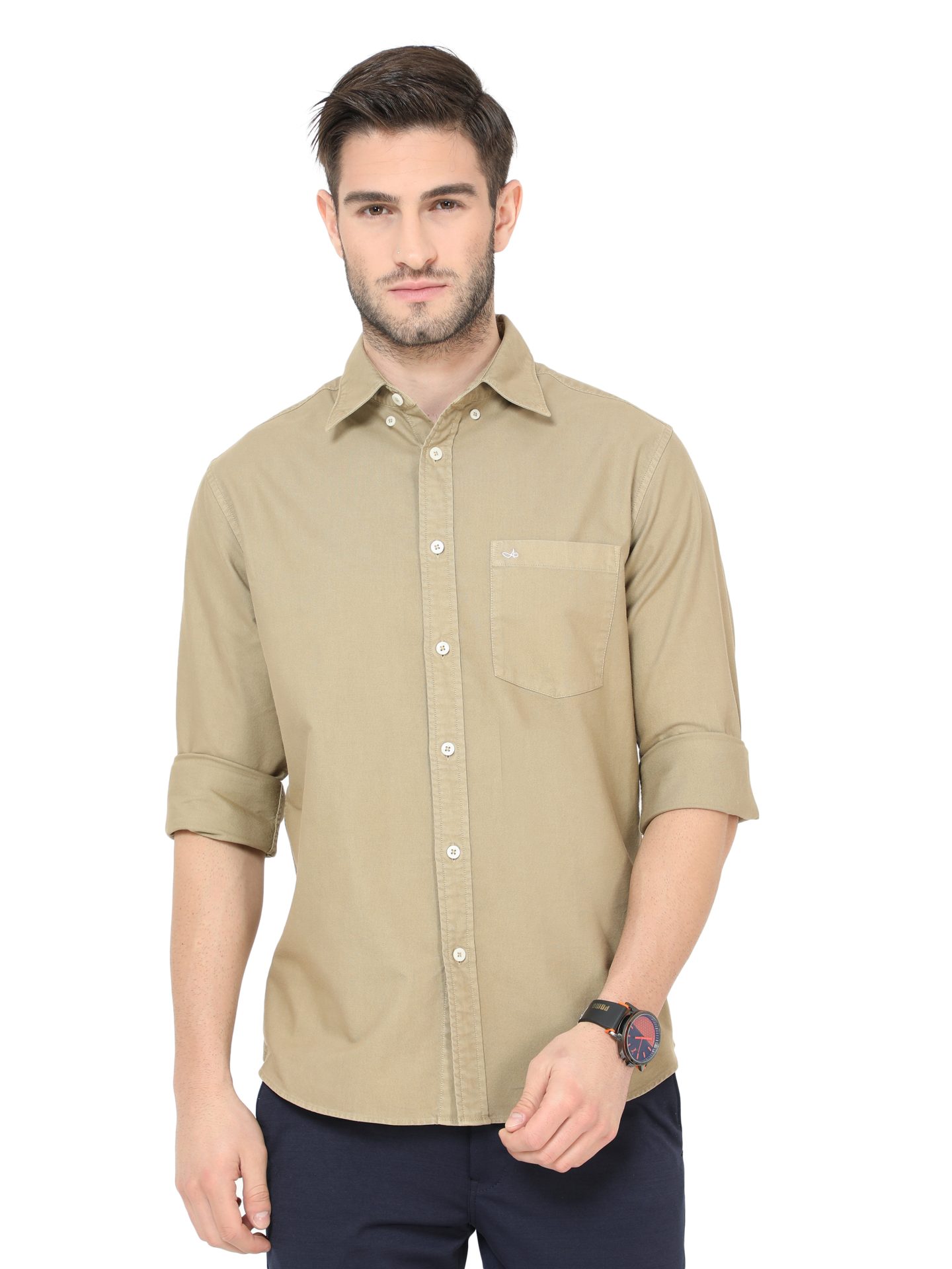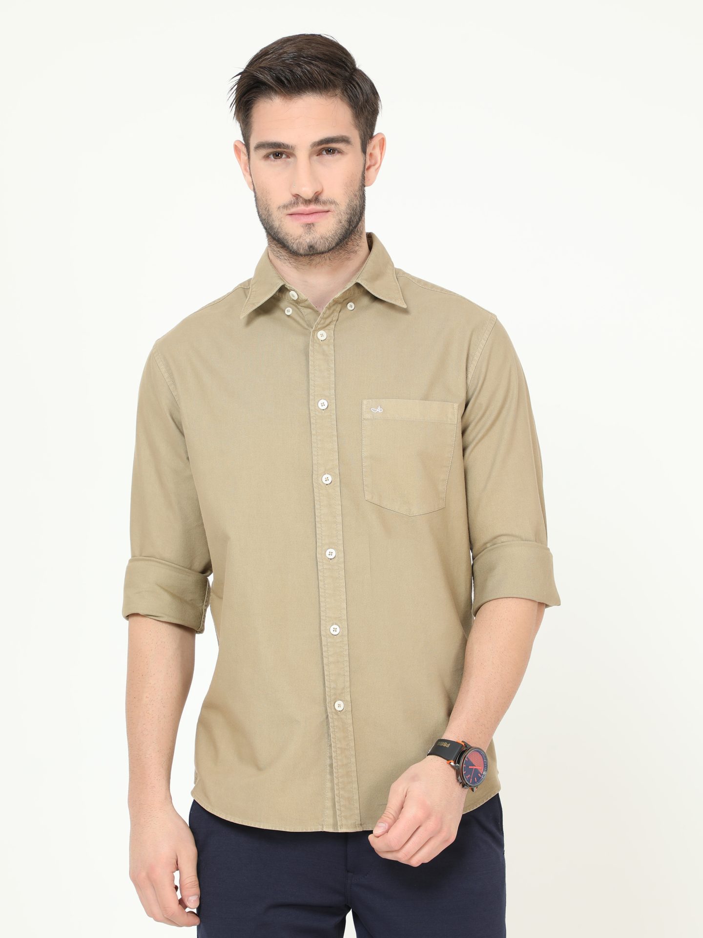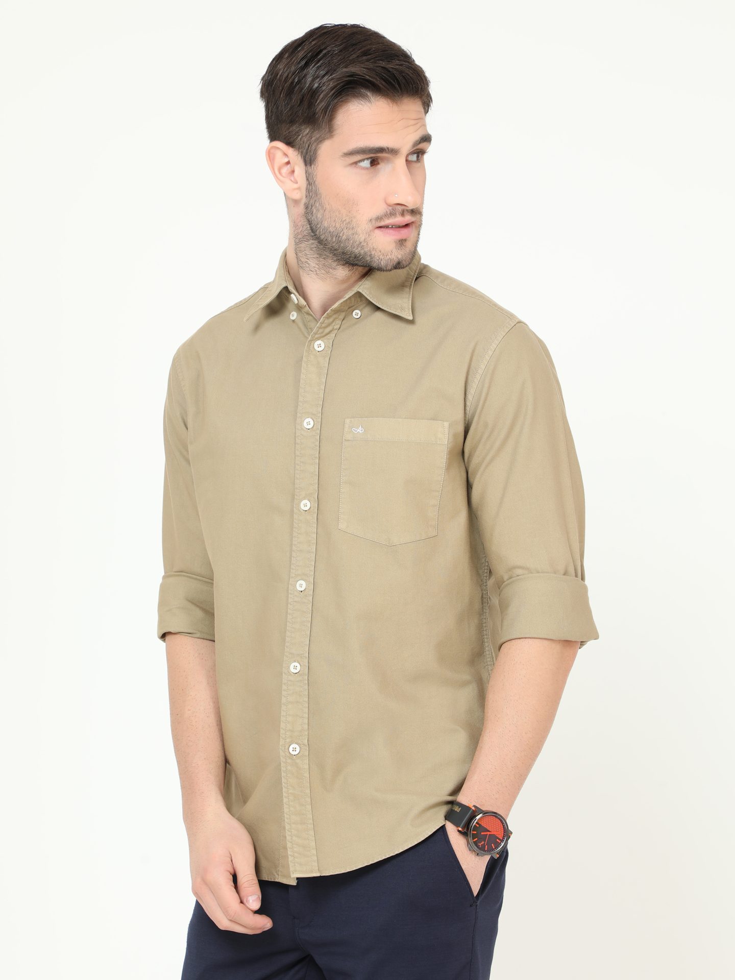 Aldeno Men’s Button Down Tan Full Sleeve Garment Dye Oxford Shirt