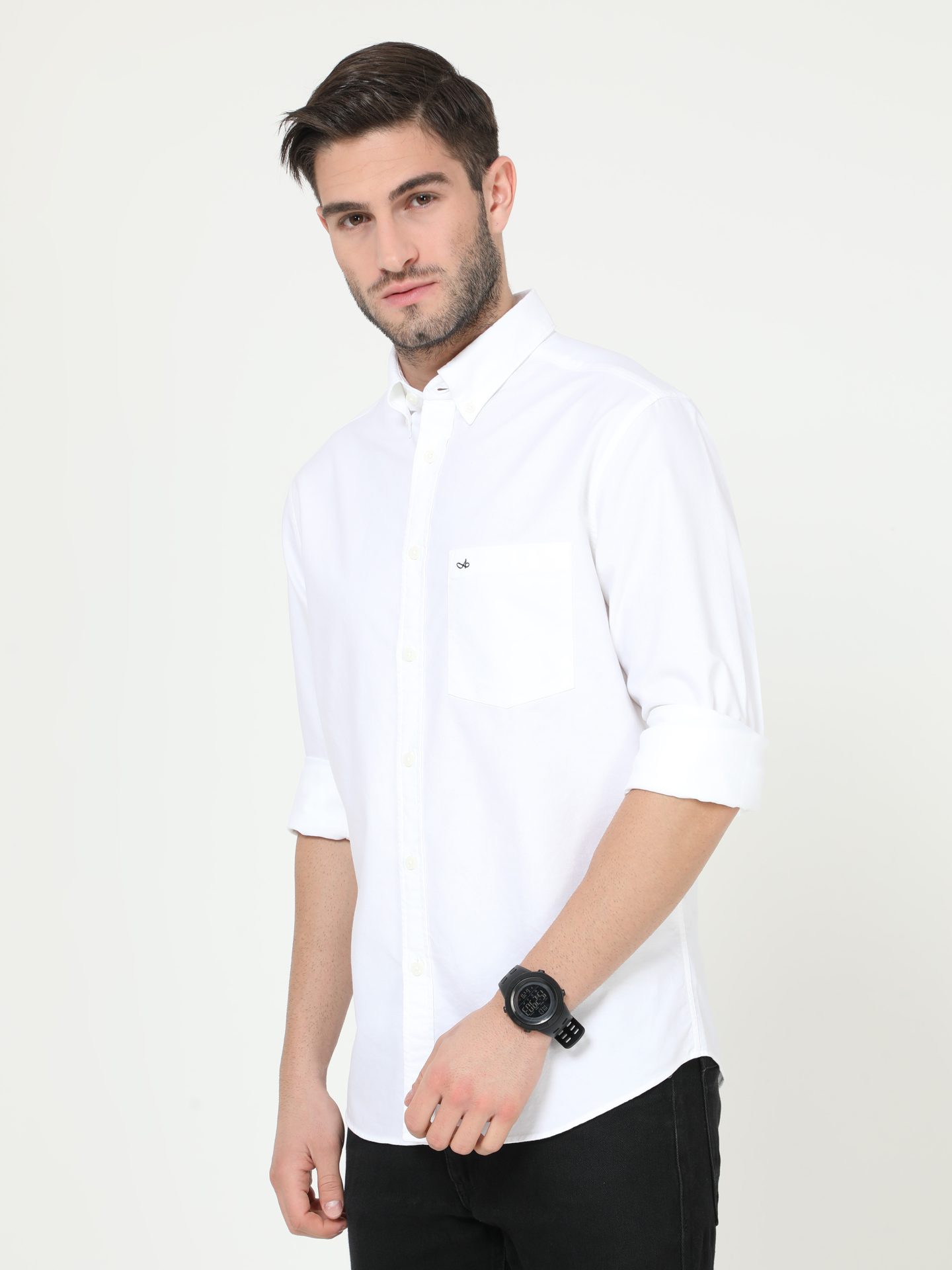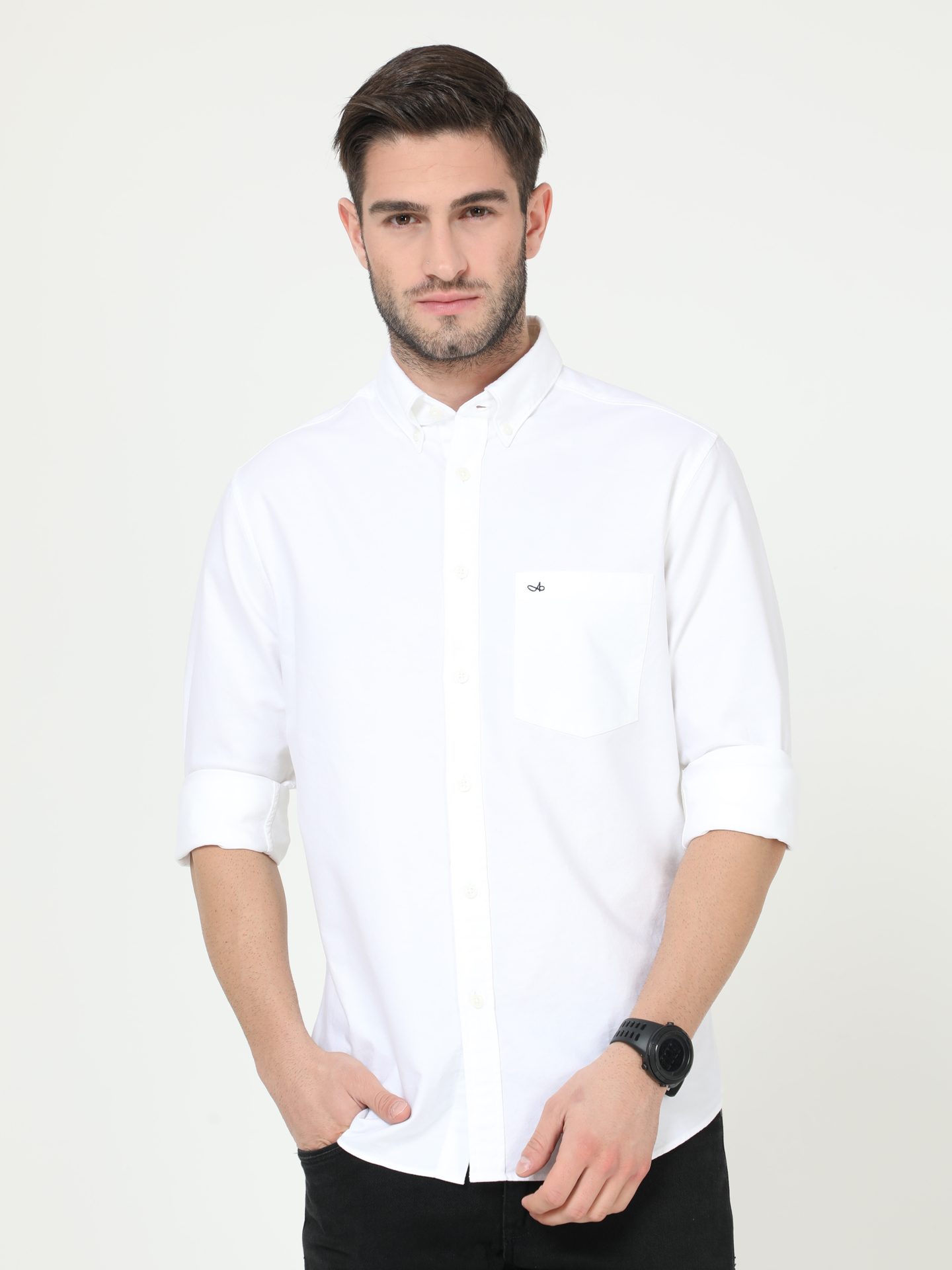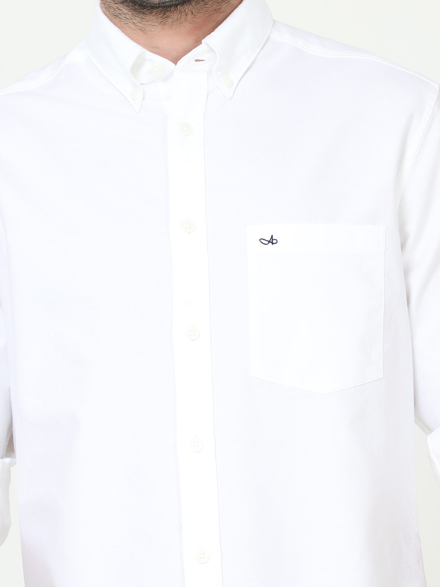 Aldeno Men’s Oxford Button Down Full White Sleeve Garment Dye Shirt