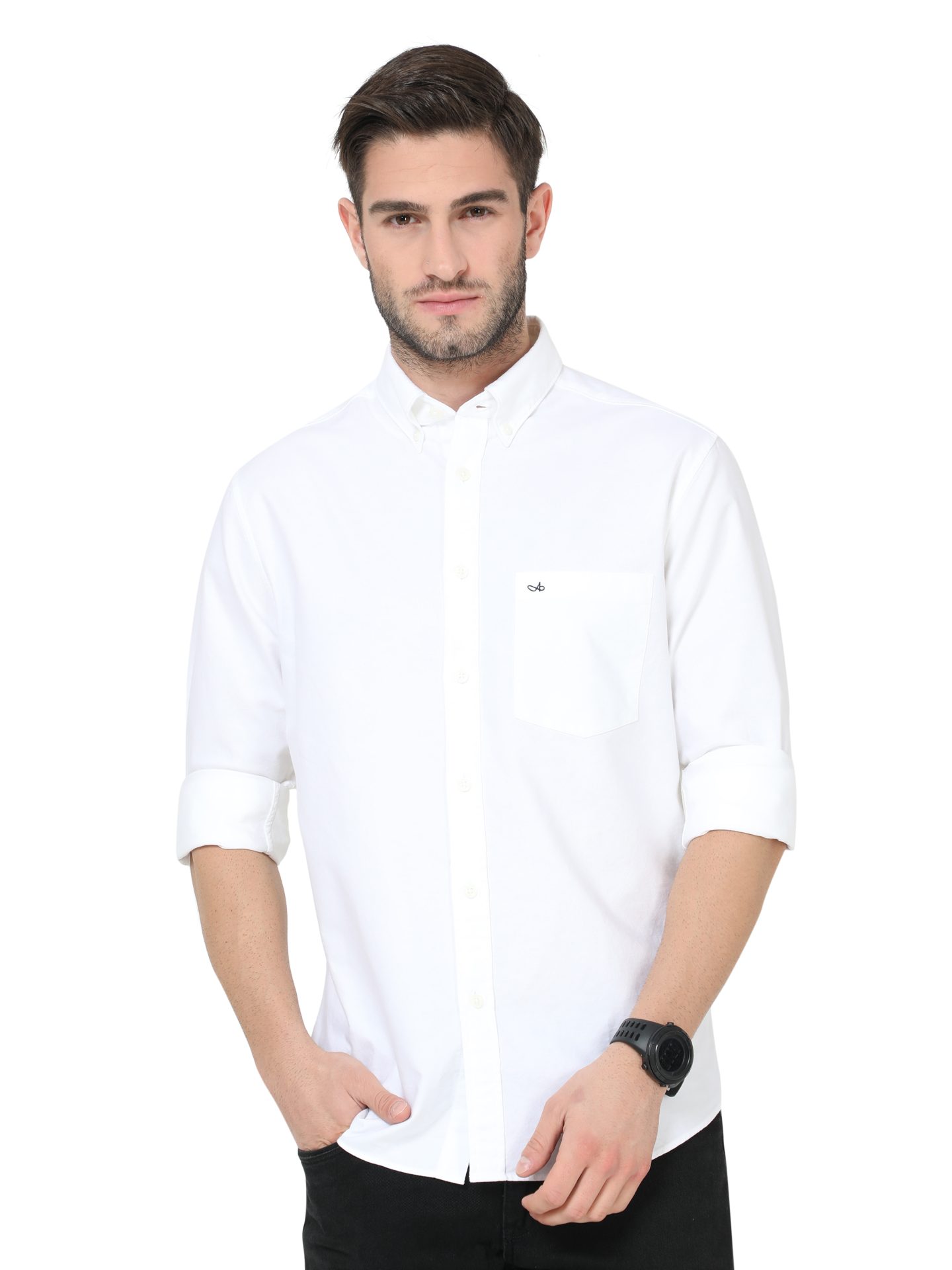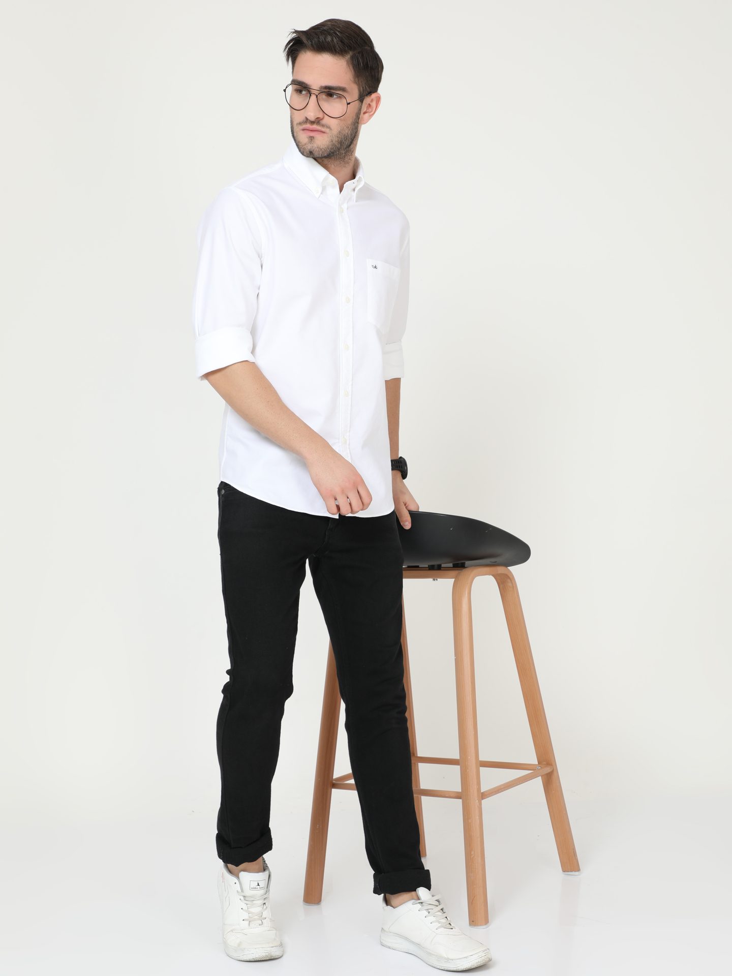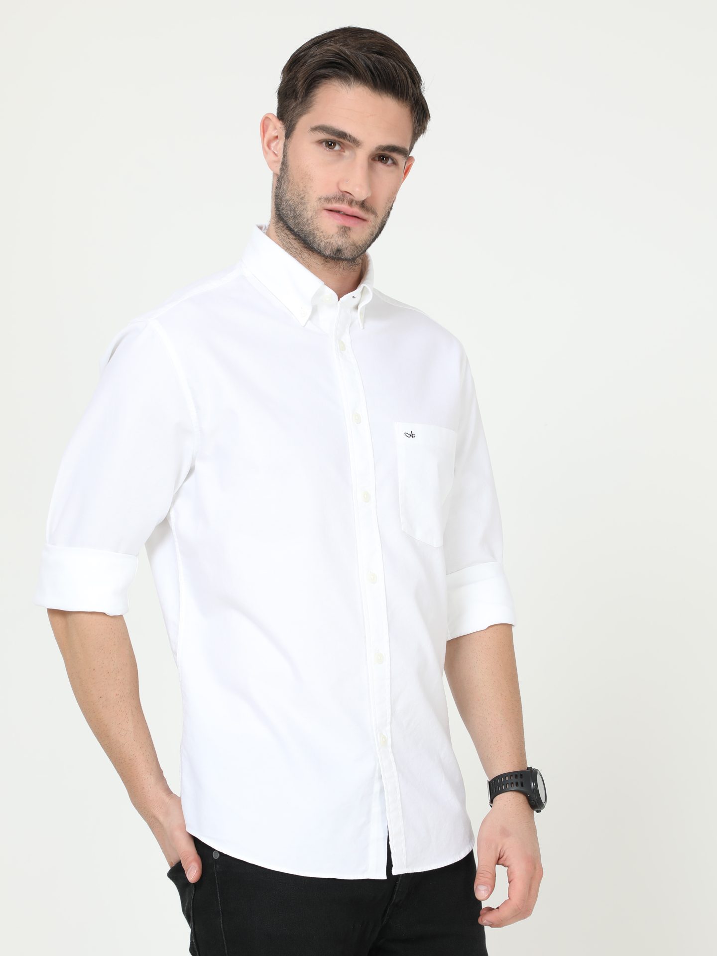 Aldeno Men’s Oxford Button Down Full White Sleeve Garment Dye Shirt