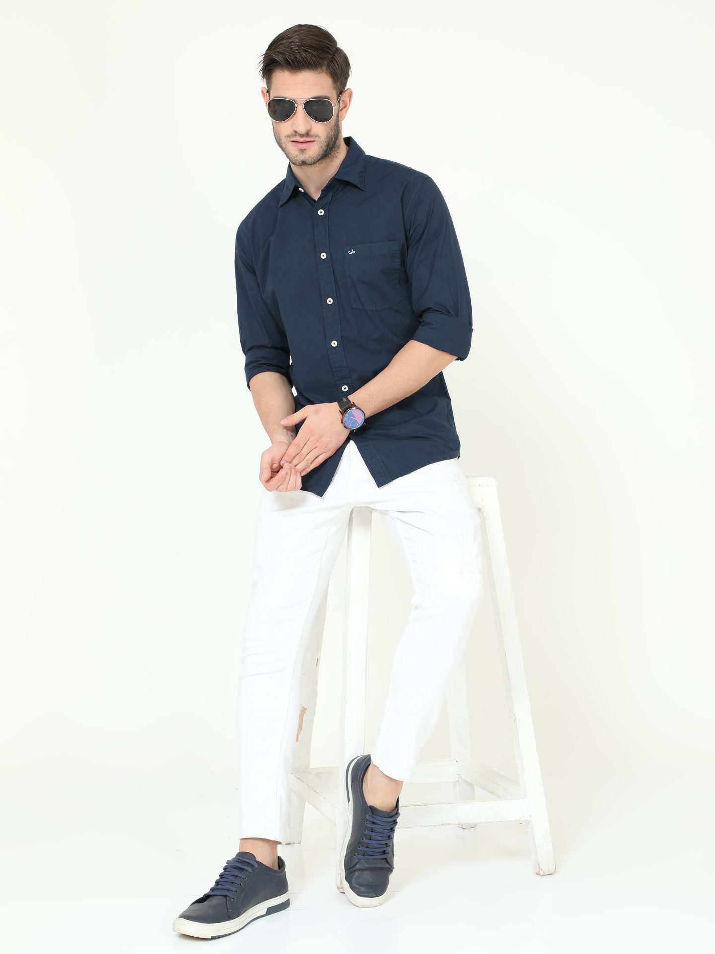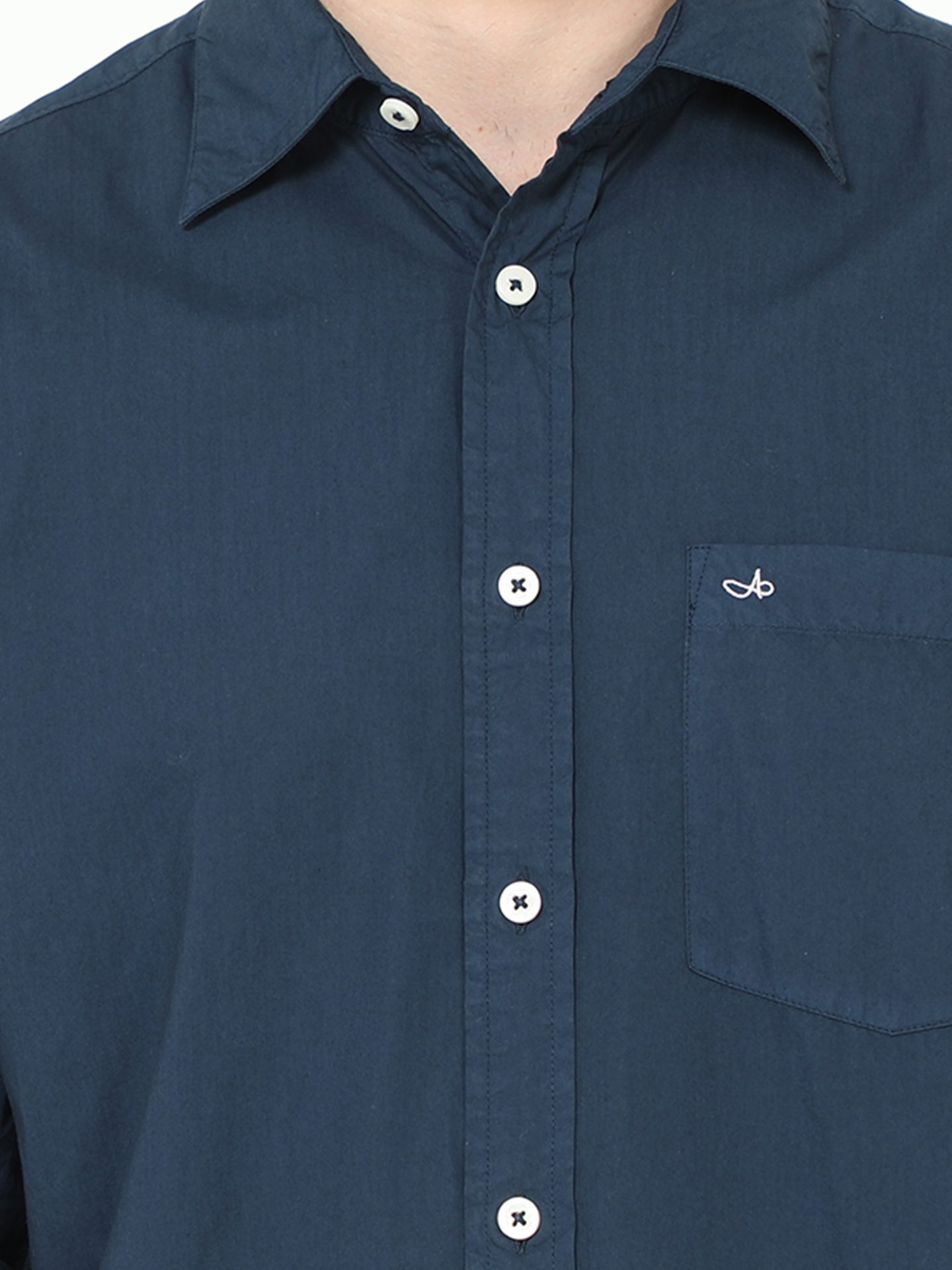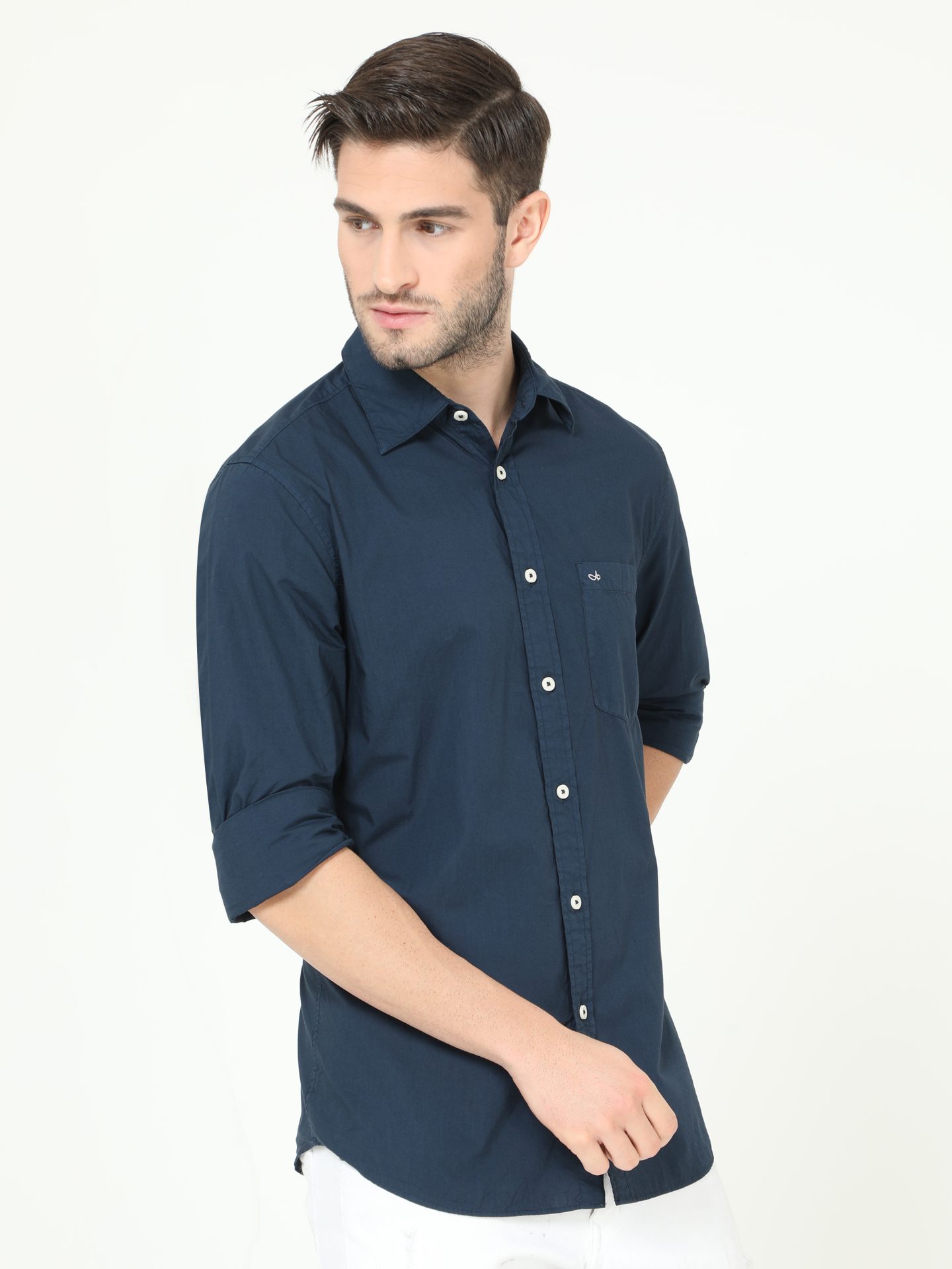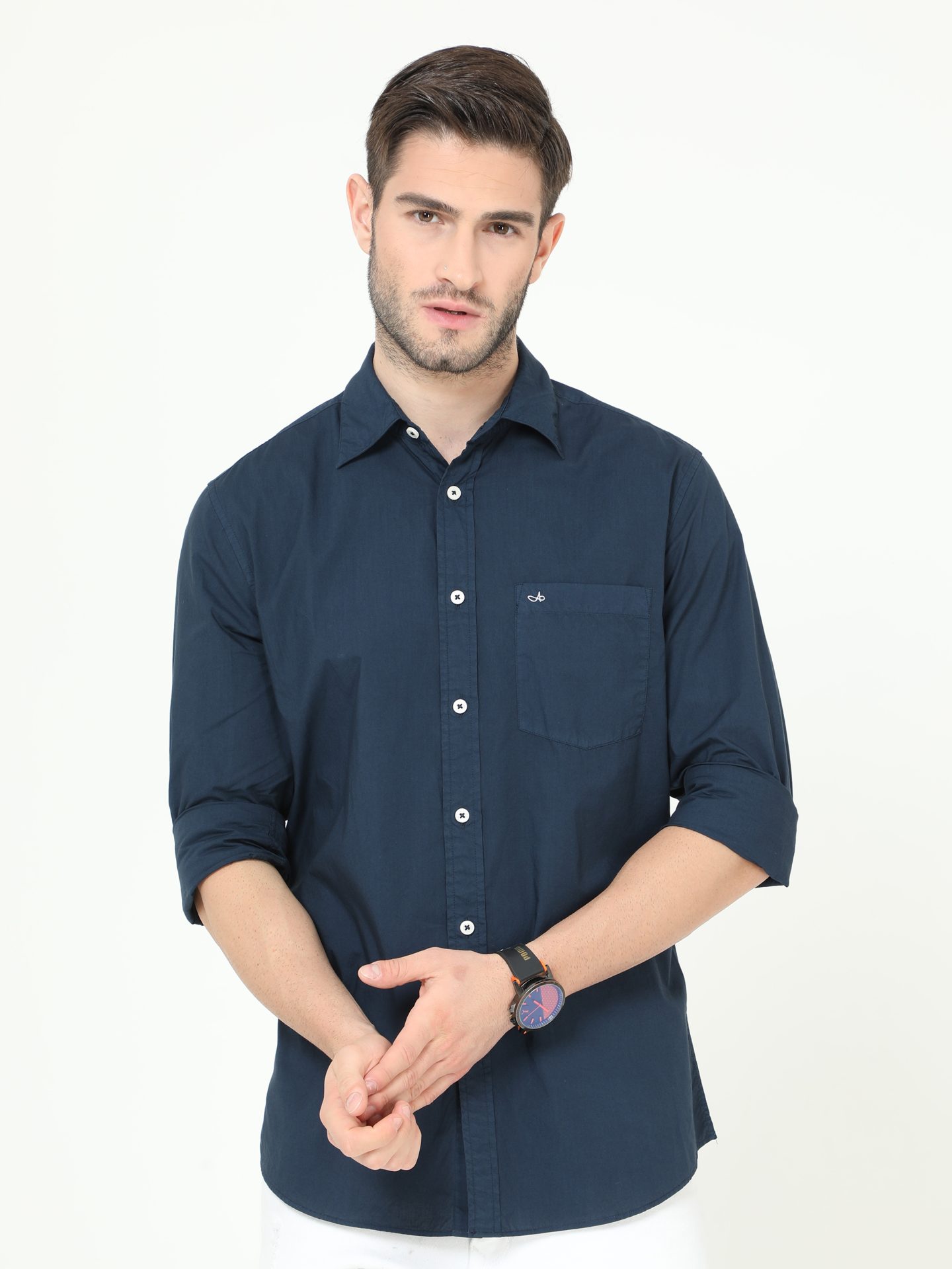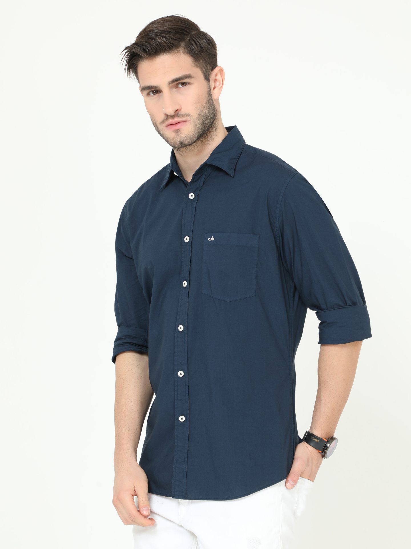 If its one thing your wardrobe requires , it’s the 70’s count Poplin Solid garment dye shirt. This shirt features a flattering slim fit cut in 100% cotton and consists of Regular collar with Chiselled cuff and Cut & Sew placket. Crafted in a smooth poplin weave the fabric has a unique easy breezy feel that offers the shirt utmost comfort with its light weight and clean look.