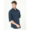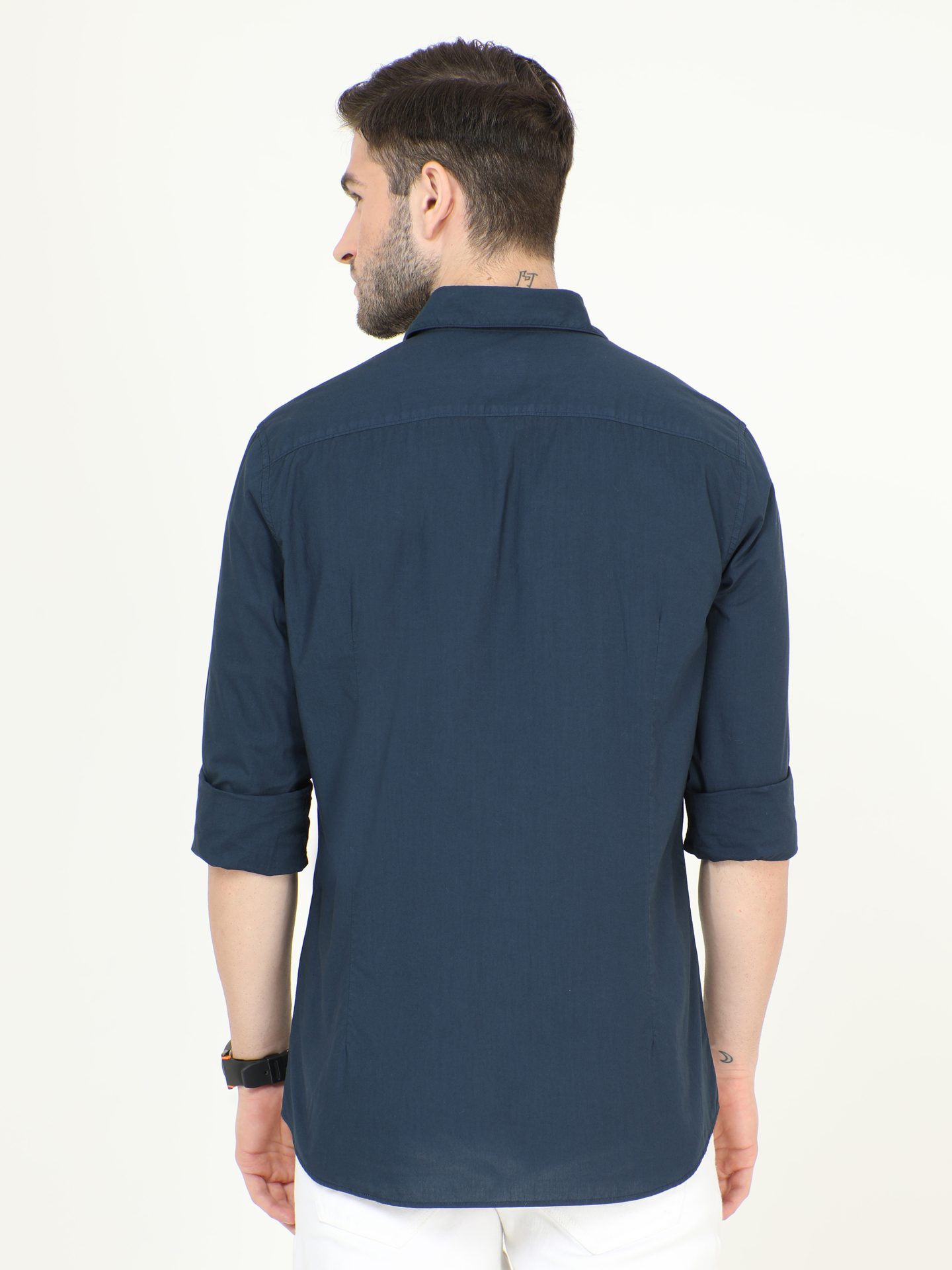 ALDENO Men’s Poplin Navy Blue 70’s Chiselled Cuff Full Sleeve Slim-Fit Shirt