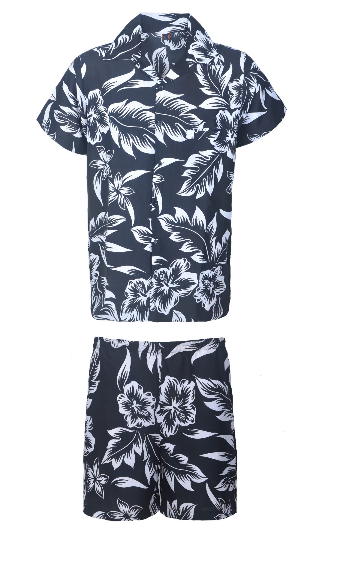 Men’s Stag Beach Aloha Party Summer Holiday Hawaiian Fancy Black Floral Shirt And Short Set