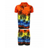 Men’s Stag Beach Aloha Party Summer Holiday Hawaiian Fancy Orange Palm Shirt And Short Set